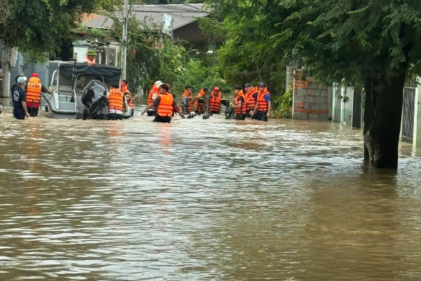 Lực lượng Công an tỉnh Khánh Hòa tiếp cận nhiều vùng lũ lụt để hỗ trợ giúp đỡ, sơ tán người dân.