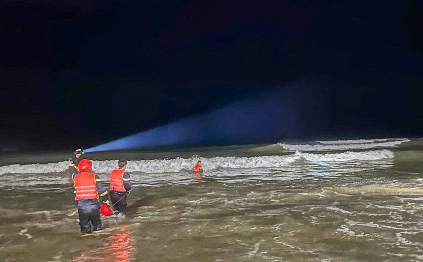 Lực lượng chức năng nỗ lực tìm kiếm nạn nhân bị sóng cuốn trôi.