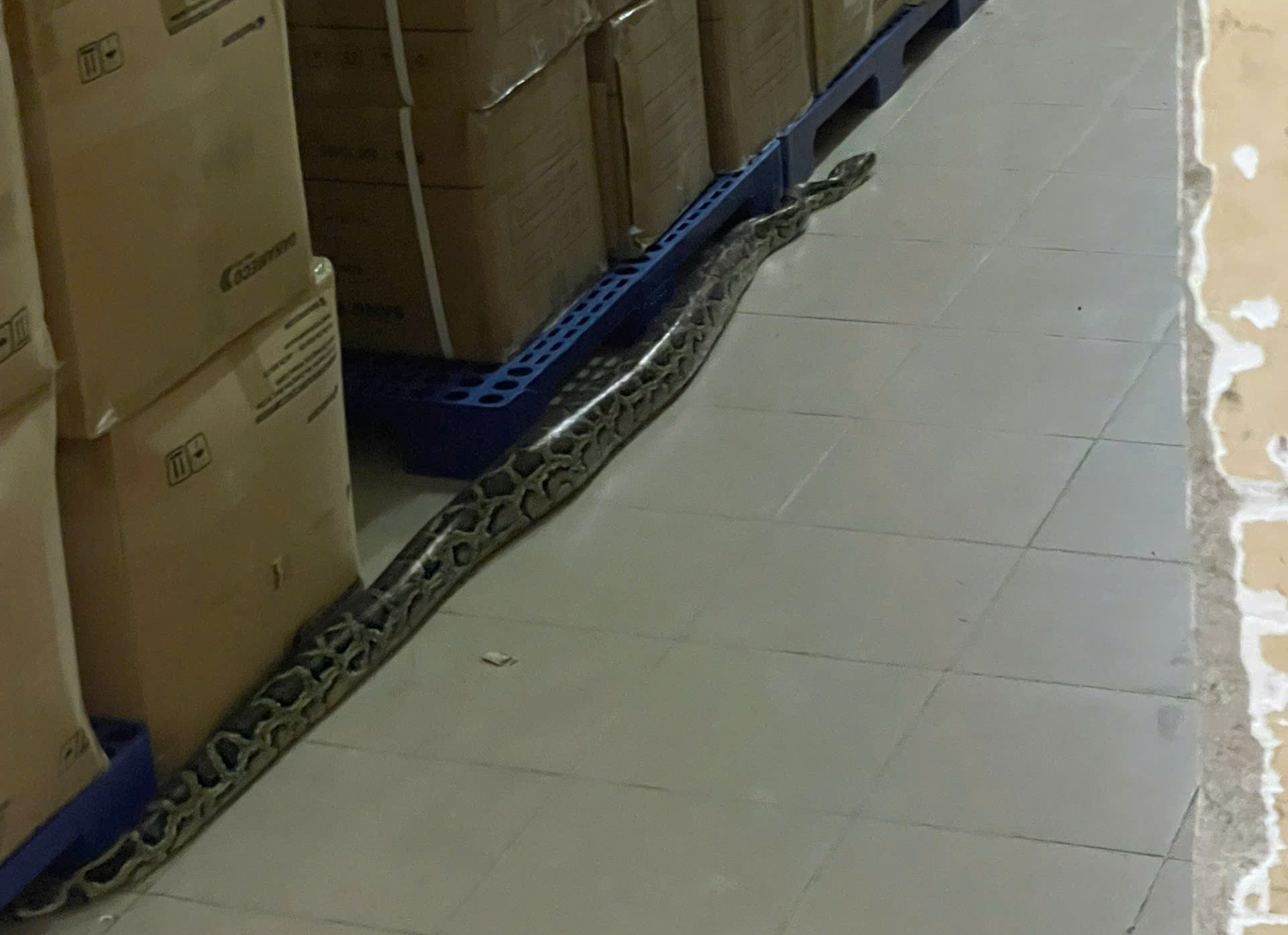 Trăn bò tại hành lang một bệnh viện ở phường Nha Trang khoảng 4 ngày trước. Ảnh: M.T