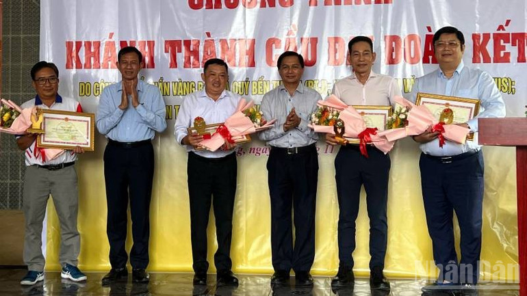 Tại lễ khánh thành, Ban tổ chức đã trao Bằng khen của Ủy ban Nhân dân tỉnh Vĩnh Long cho 1 tập thể và 3 cá nhân có thành tích đóng góp thực hiện công tác từ thiện xã hội, xây dựng cầu Đại đoàn kết trên địa bàn xã Tân Phú, tỉnh Vĩnh Long năm 2025. Đồng thời, trao kinh phí 100 triệu đồng cho Quỹ Khuyến học tỉnh Vĩnh Long do Tập đoàn Go holdings tài trợ.