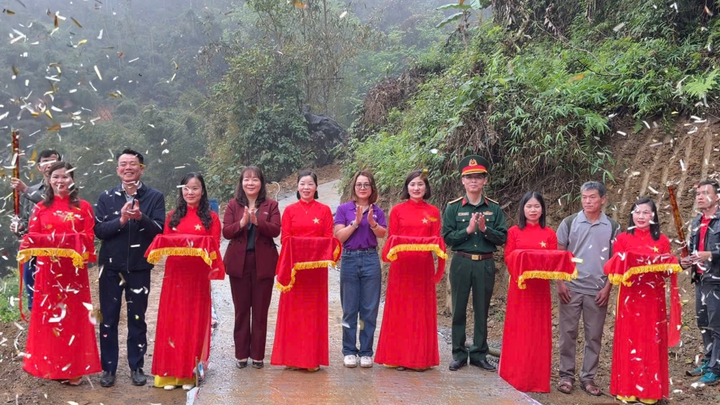 Tiếp đó, đoàn tổ chức khánh thành “Con đường em đến trường” xóm Bình Lương, công trình được khởi công từ cuối tháng 1/2026, có chiều dài 385m, chiều rộng mặt đường 3m, đạt tiêu chuẩn đường giao thông nông thôn cấp C theo quy định Bộ Xây dựng.