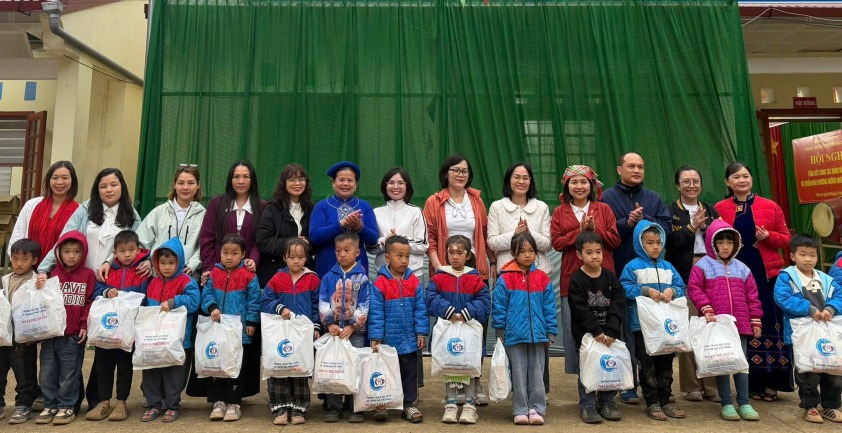 Đoàn công tác trao tặng quà học sinh Trường Tiểu học và THCS Đức Xuân, xã Hòa An.