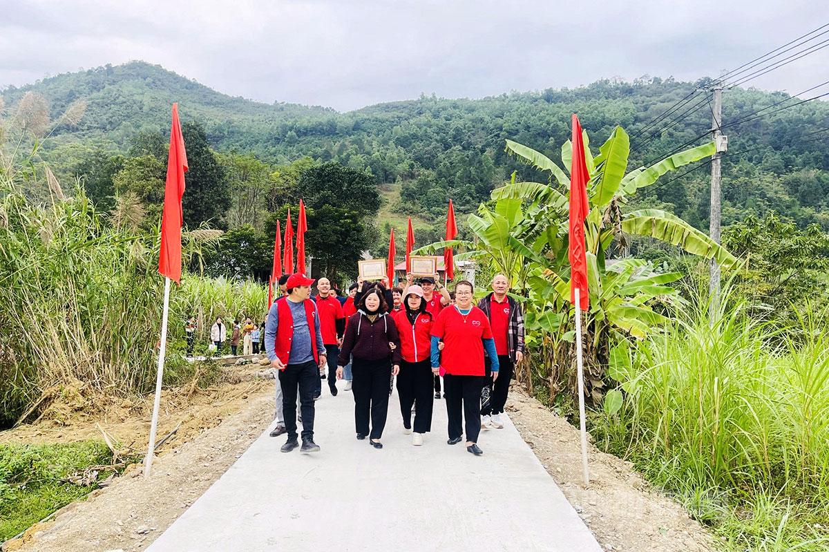 Niềm vui của các đại biểu và người dân thôn Mịch B khi có đường mới.