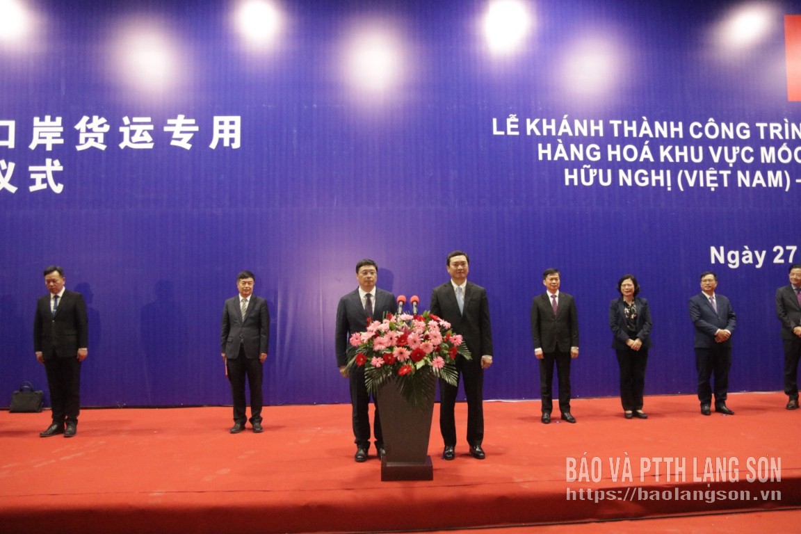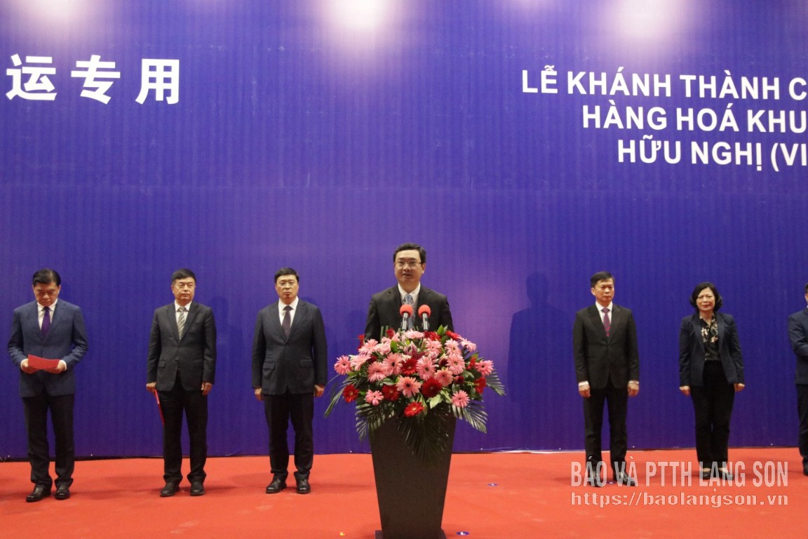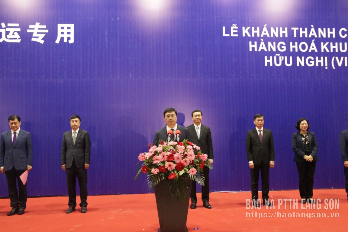 Đồng chí nhấn mạnh: việc khánh thành công trình đường chuyên dụng vận chuyển hàng hóa có ý nghĩa quan trọng và đóng vai trò then chốt, góp phần nâng cao năng lực thông quan hàng hóa qua cặp cửa khẩu Hữu Nghị - Hữu Nghị Quan. Đây là bước tiến đánh dấu việc hình thành cửa khẩu thông minh giữa hai bên. Đồng chí tin tưởng, quan hệ hữu nghị hợp tác giữa Quảng Tây với tỉnh Lạng Sơn sẽ ngày càng phát triển.