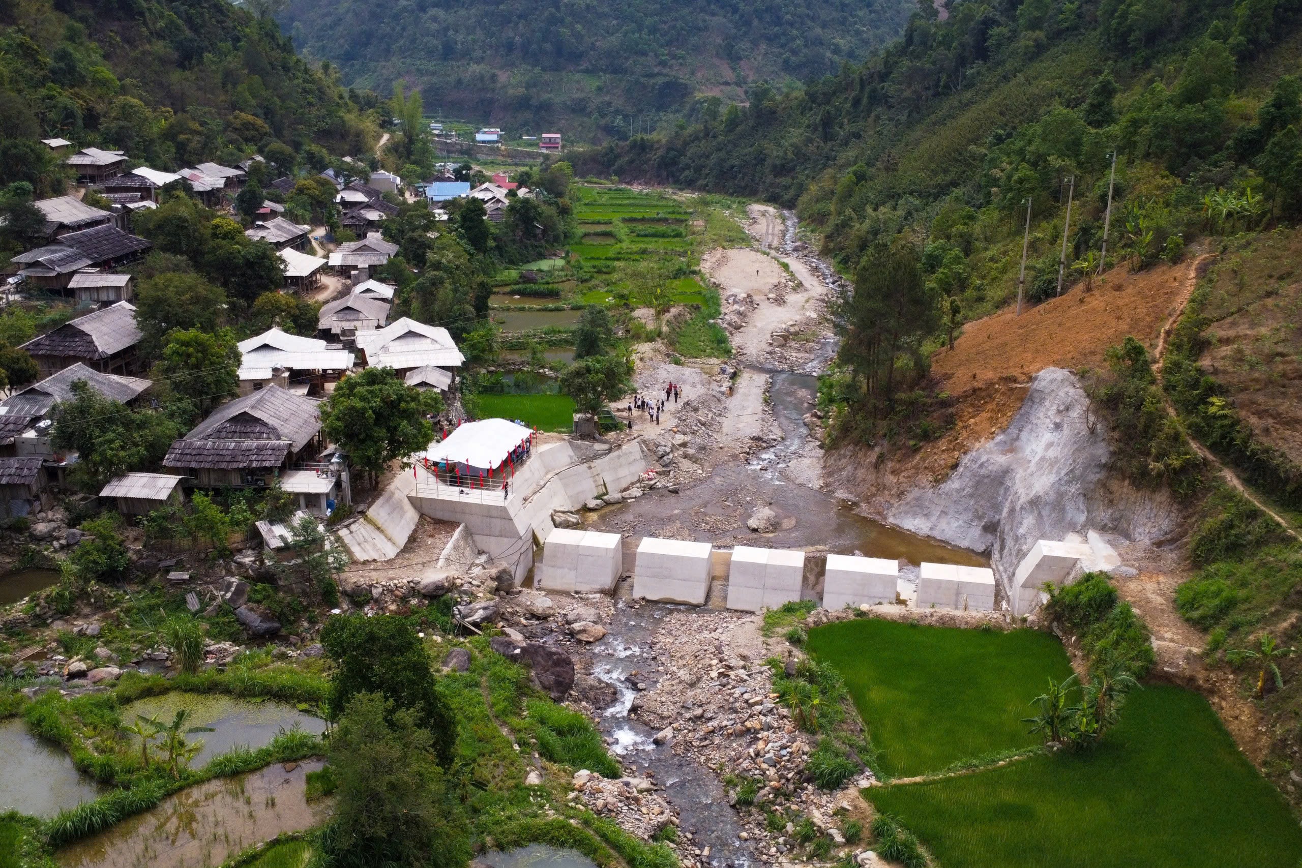 Công trình ngăn chặn lũ bùn và đá đầu tiên được Nhật Bản hỗ trợ Việt Nam. Ảnh: NGỌC HÀ