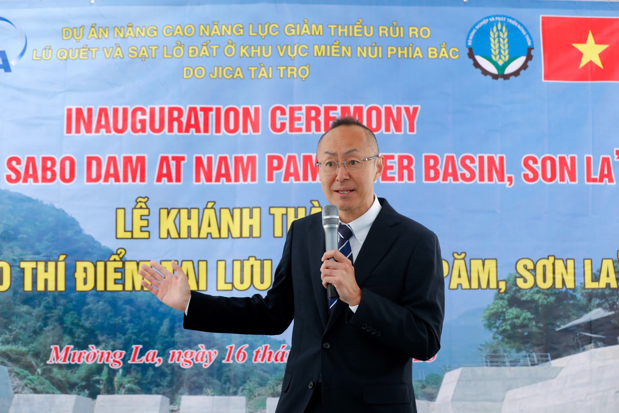 Phát biểu tại buổi lễ, ông Nguyễn Trường Sơn, Phó Cục trưởng Cục Quản lý đê điều và Phòng chống thiên tai, mong muốn Chính phủ Nhật Bản tiếp tục hỗ trợ Việt Nam xây dựng hệ thống đập SABO hoàn chỉnh trên các lưu vực khác để mở rộng mô hình này.