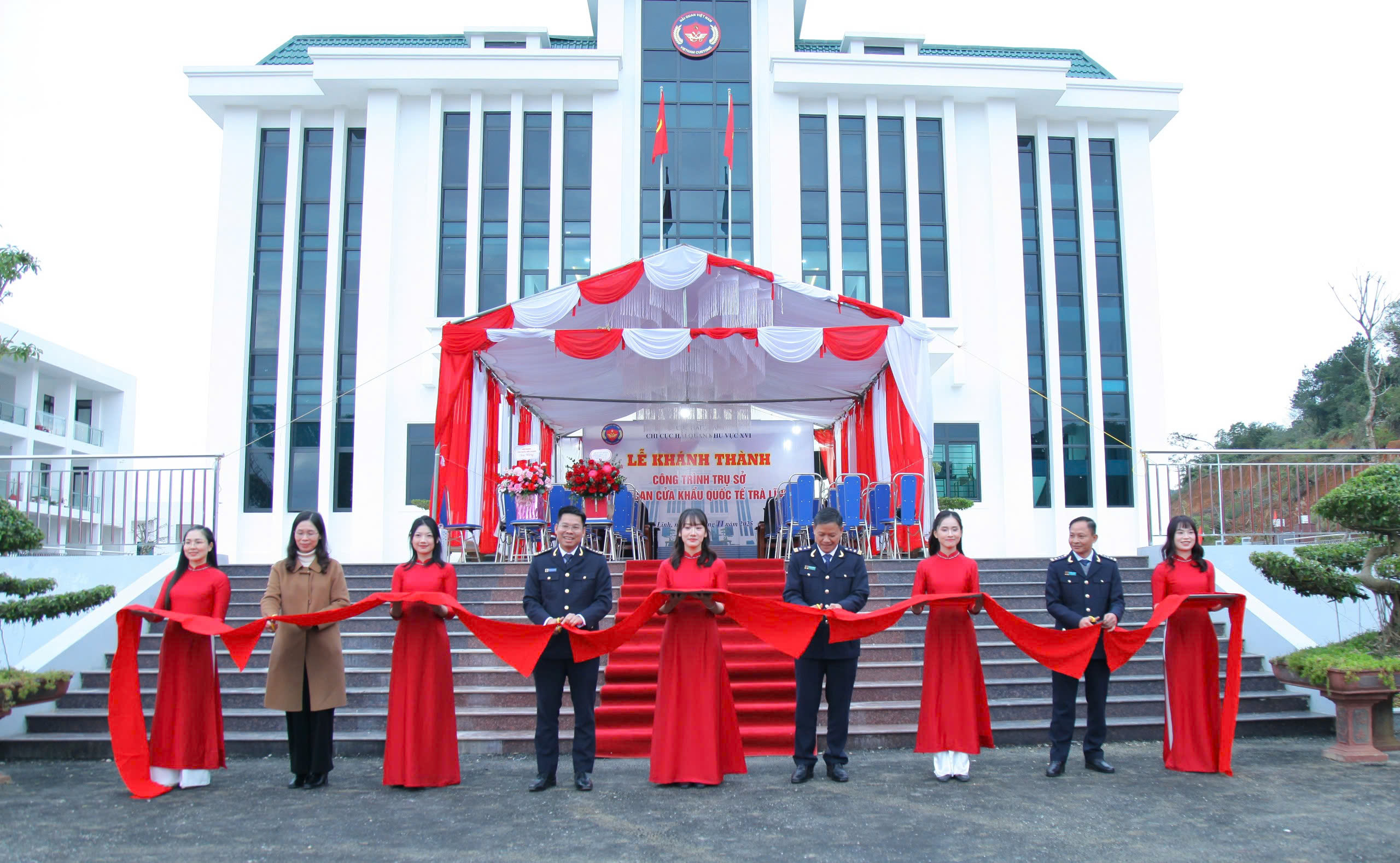 Các đại biểu cắt băng khánh thành công trình Trụ sở Hải quan Cửa khẩu Quốc tế Trà Lĩnh.