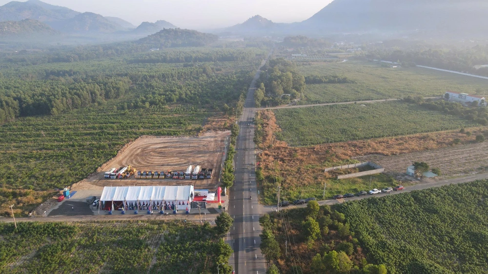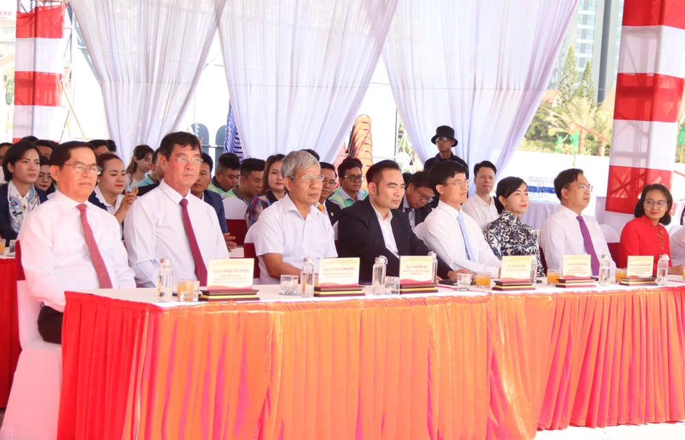Các đại biểu thực hiện nghi thức khởi công dự án. Ảnh: KHÁNH NAM