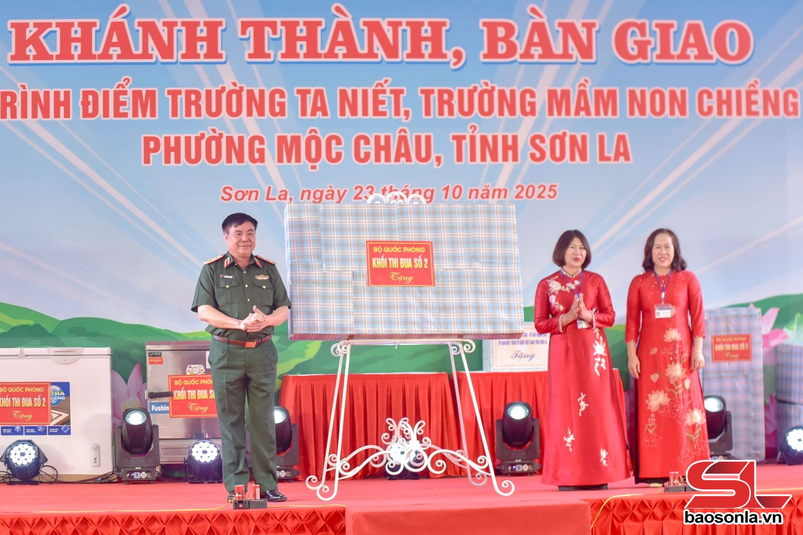 Khối thi đua số 2, Bộ Quốc phòng tặng quà điểm trường Ta Niết, Trường Mầm non Chiềng Hắc.