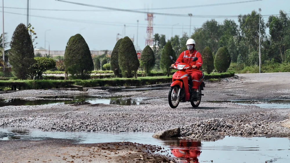 Nhiều tuyến đường ở khu kinh tế Dung Quất đã xuống cấp.