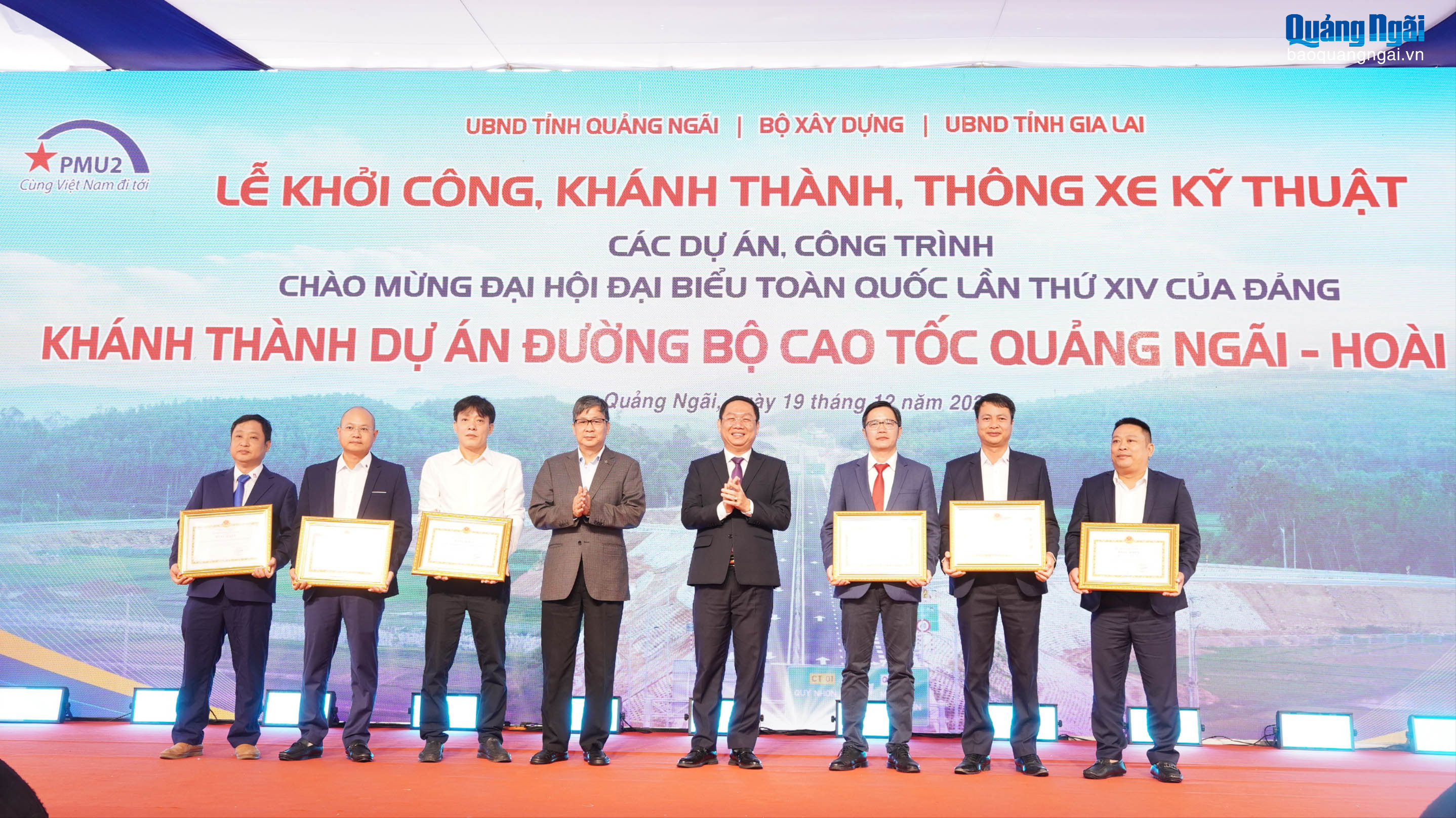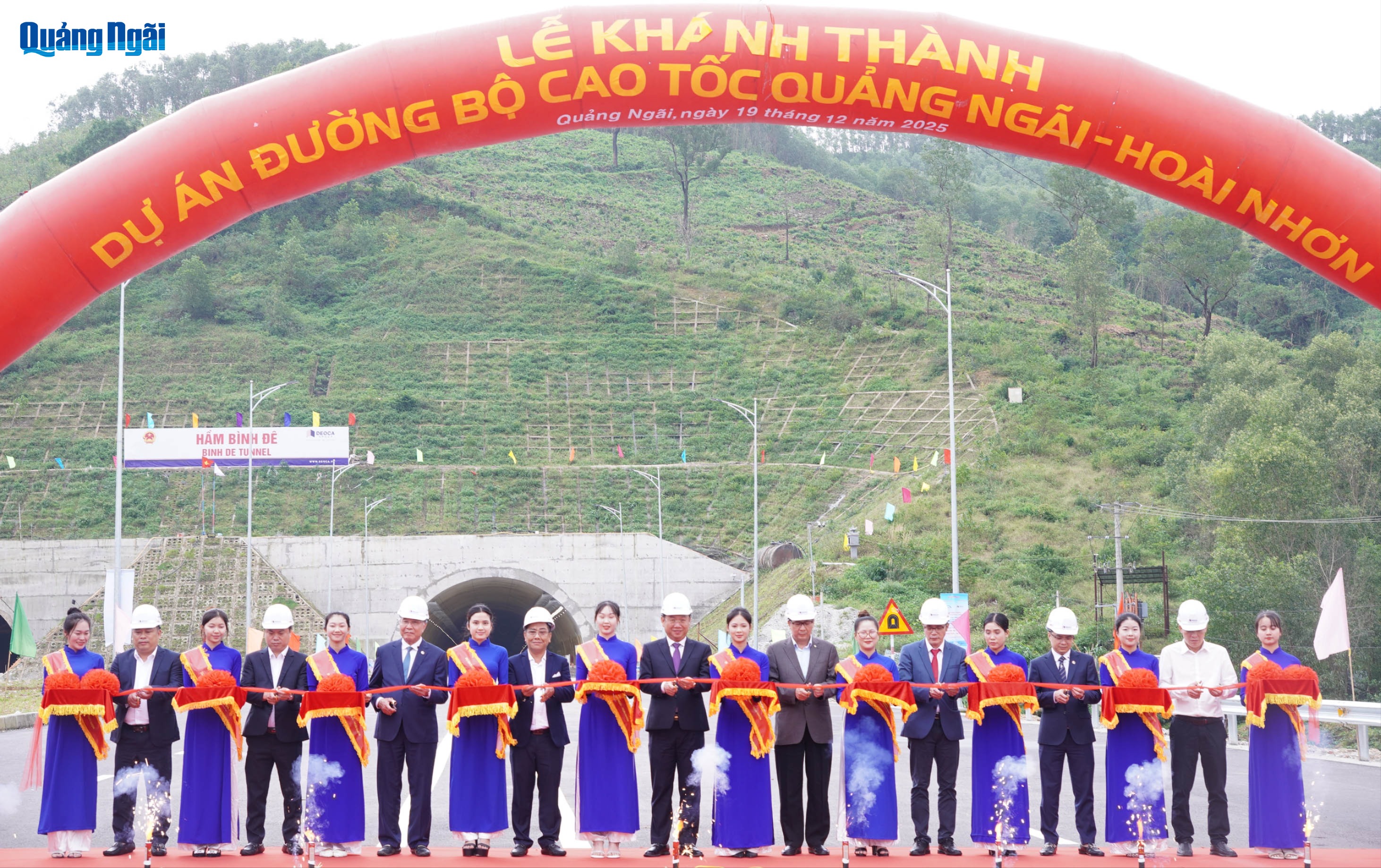 Sáng 19/12, Phó Chủ tịch UBND tỉnh Nguyễn Công Hoàng; Phó Cục trưởng Cục Kinh tế - Quản lý đầu tư xây dựng (Bộ Xây dựng) Đinh Mạnh Đức dự Lễ khánh thành dự án Đường bộ cao tốc Quảng Ngãi - Hoài Nhơn (dự án) tại khu vực phía Bắc hầm số 3, xã Khánh Cường.