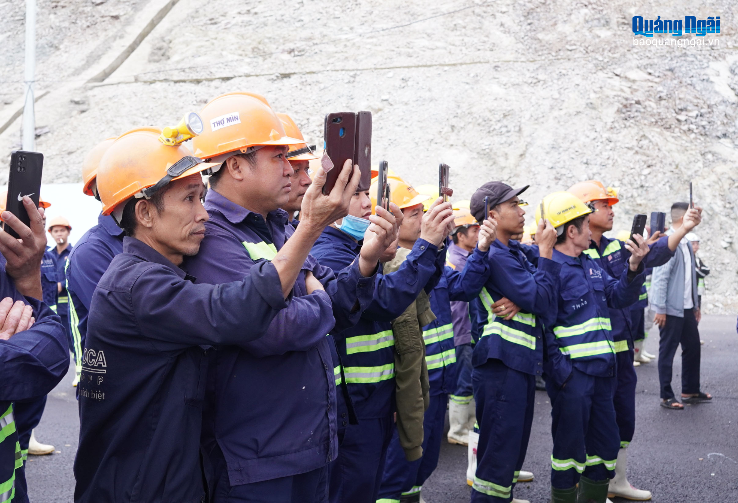 Niềm vui của các công nhân dõi theo lễ khánh thành dự án.