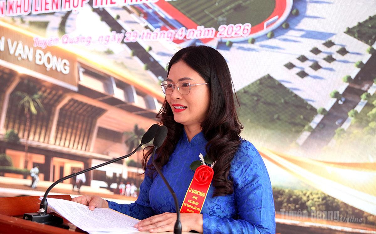 Phát biểu tại lễ khánh thành, Phó Chủ tịch UBND tỉnh Vương Ngọc Hà nhấn mạnh: Công trình được khánh thành, đưa vào sử dụng đúng dịp chào mừng kỷ niệm 51 năm Ngày Giải phóng miền Nam thống nhất đất nước (30/4/1975 – 30/4/2026) và 140 năm Ngày Quốc tế Lao động 1/5. Dự án còn là điểm nhấn trong phát triển hạ tầng văn hóa - xã hội của tỉnh; khẳng định vai trò của đầu tư công trong dẫn dắt, kiến tạo không gian phát triển, tạo nền tảng huy động các nguồn lực xã hội tham gia phát triển văn hóa, thể thao, góp phần xây dựng con người Tuyên Quang phát triển toàn diện, nâng cao đời sống vật chất, tinh thần của Nhân dân.