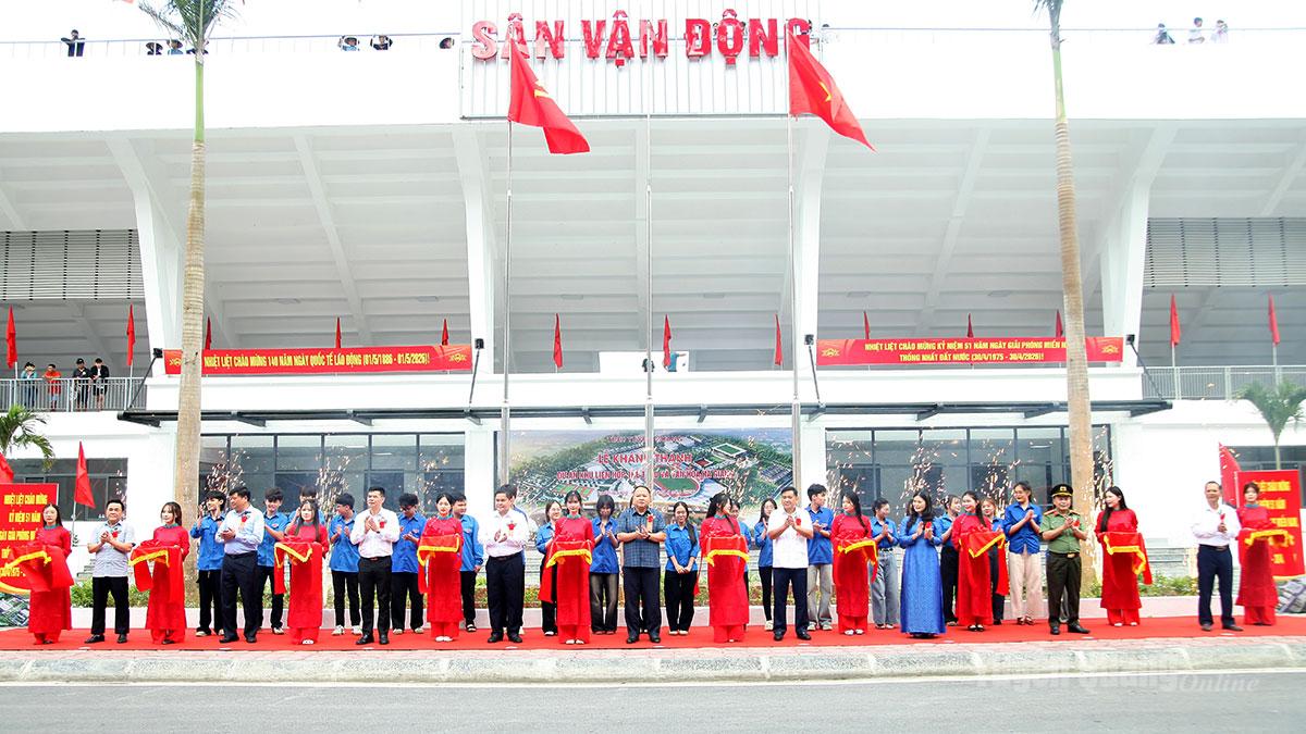 Các đại biểu cắt băng khánh thành Dự án Khu liên hợp Thể thao và Văn hóa Hà Giang.