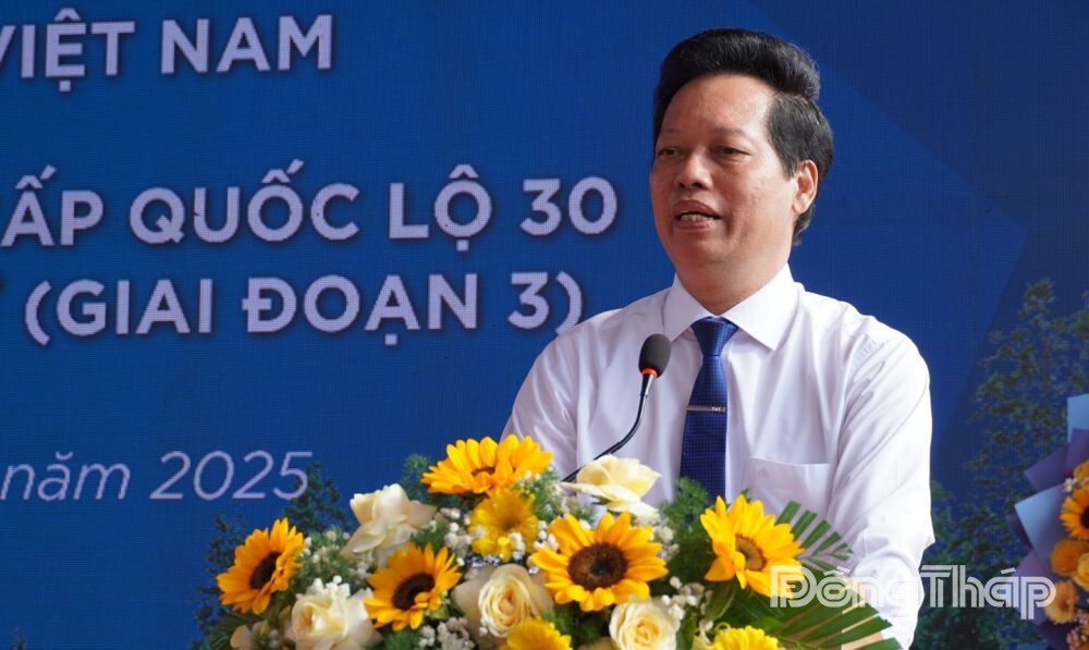 Phát biểu tại buổi lễ, đồng chí Nguyễn Thành Diệu, Phó Chủ tịch UBND tỉnh Đồng Tháptrân trọng ghi nhận và cảm ơn các bộ, ngành Trung ương và biểu dương sự nỗ lực, trách nhiệm của các các sở, ban, ngành tỉnh, chính quyền các địa phương có tuyến đường đi qua, chủ đầu tư, các đơn vị tư vấn, nhà thầu thi công, giám sát, đội ngũ kỹ sư, cán bộ kỹ thuật, công nhân lao động đã làm việc với tinh thần trách nhiệm cao, vượt qua khó khăn, thách thức để hoàn thành công trình đạt chất lượng và tiến độ đề ra.