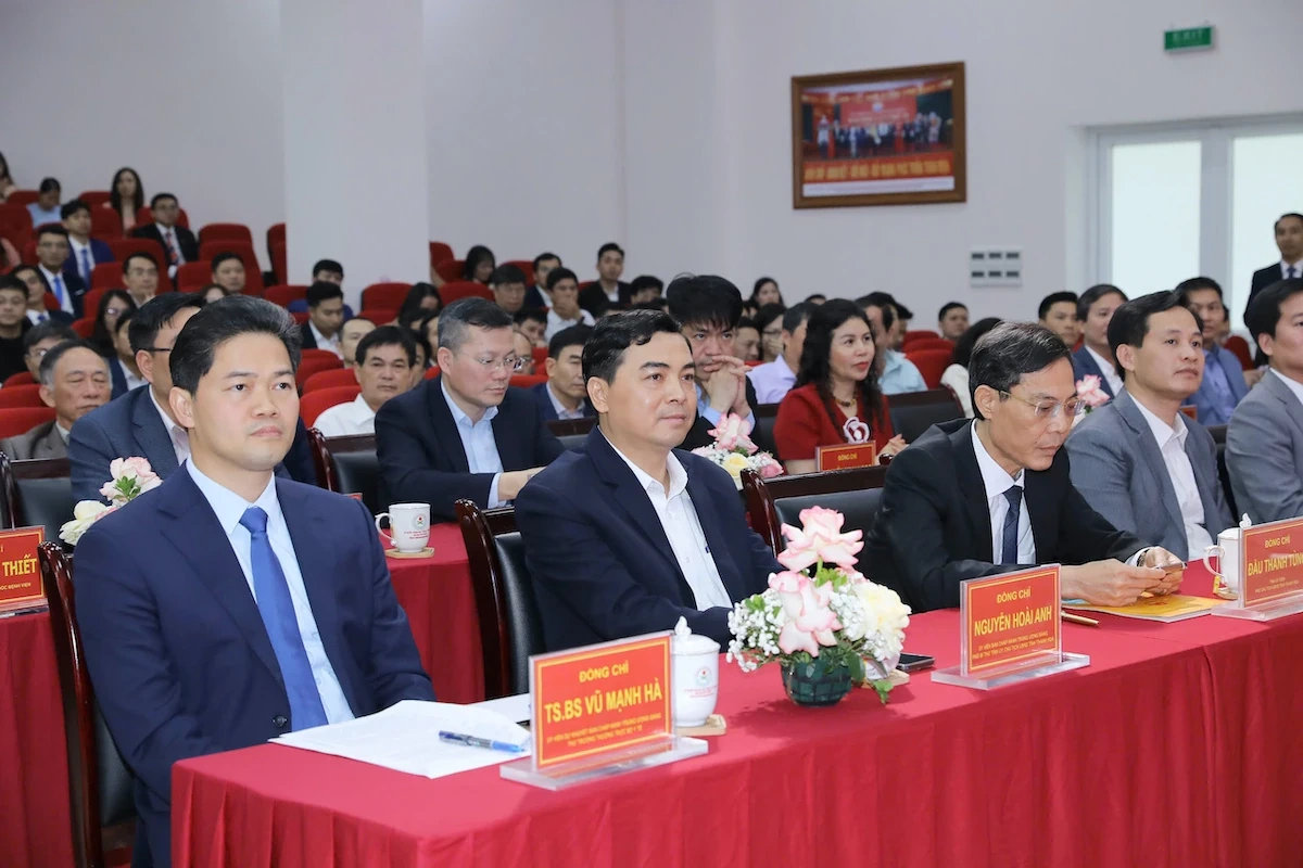 Các đồng chí: Nguyễn Hoài Anh, Ủy viên Trung ương Đảng, Phó Bí thư Tỉnh ủy, Chủ tịch UBND tỉnh; Vũ Mạnh Hà, Ủy viên dự khuyết Trung ương Đảng, Thứ trưởng Thường trực Bộ Y tế; Đầu Thanh Tùng, Tỉnh ủy viên, Phó Chủ tịch UBND tỉnh, cùng các đại biểu tham dự buổi lễ.
