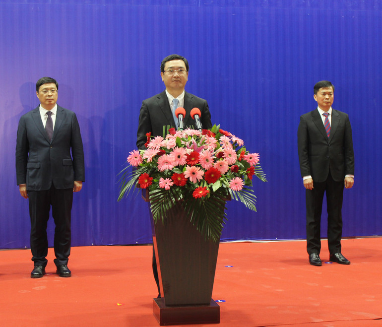 Đồng chí Vi Thao, Ủy viên Ban Chấp hành Trung ương Đảng Cộng sản Trung Quốc, Phó Bí thư Khu ủy, Chủ tịch Khu tự trị dân tộc Choang Quảng Tây, Trung Quốc phát biểu tại buổi lễ.