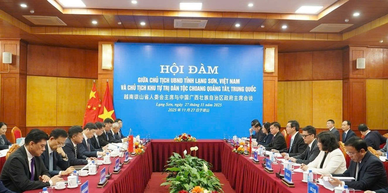 Cũng trong chiều 27/11, Đoàn Đại biểu Ủy ban nhân dân tỉnh Lạng Sơn đã hội đàm với Đoàn đại biểu khu tự trị dân tộc Choang Quảng Tây, Trung Quốc về các vấn đề thúc đẩy hợp tác thương mại, kết nối cơ sở hạ tầng, cửa khẩu thông minh và các nội dung hợp tác liên quan.