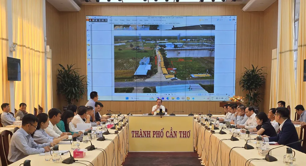 UBND TP Cần Thơ nghe báo cáo về các dự án, công trình của TP đồng loạt khánh thành, khởi công chào mừng Đại hội XIV của Đảng. Ảnh: CTV
