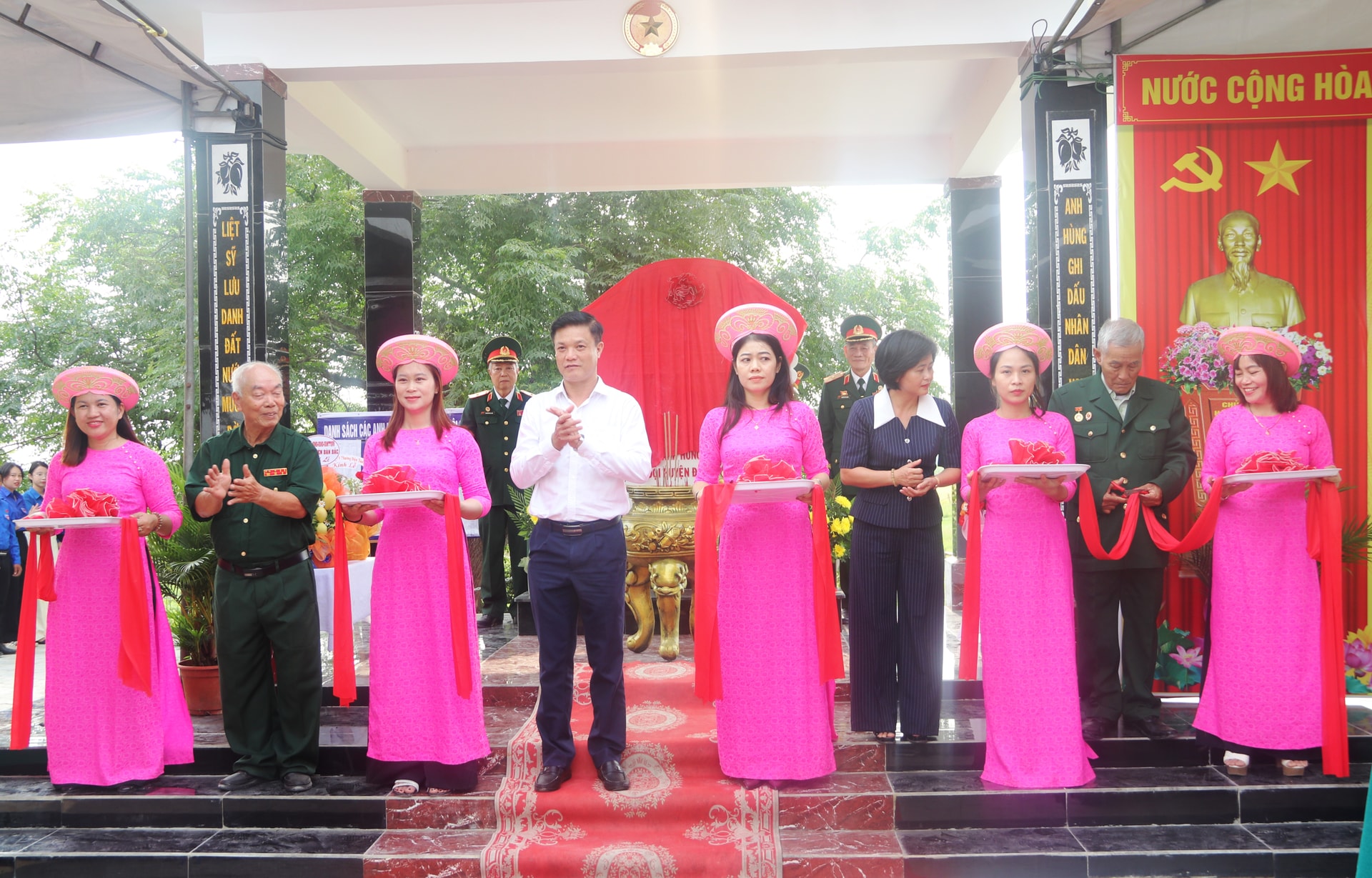 Đại biểu cắt băng khánh thành Nhà bia tưởng niệm liệt sĩ Huyện đội Điện Bàn. Ảnh: HOÀNG LIÊN