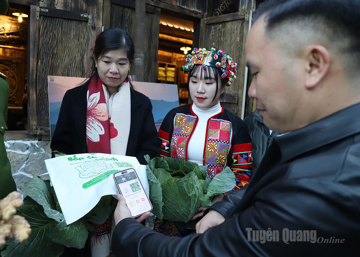 Du khách quét mã QR truy suất nguồn gốc sản phẩm địa phương
