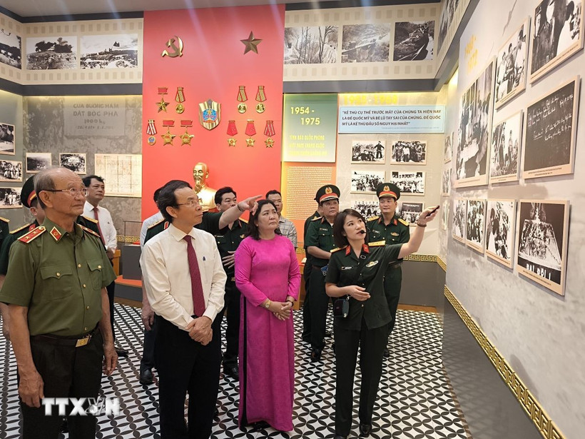 Đại biểu tham quan Nhà tưởng niệm Đại tá, Anh hùng Lực lượng vũ trang nhân dân, liệt sỹ Phạm Ngọc Thảo. (Ảnh: Huỳnh Phúc Hậu/TTXVN)