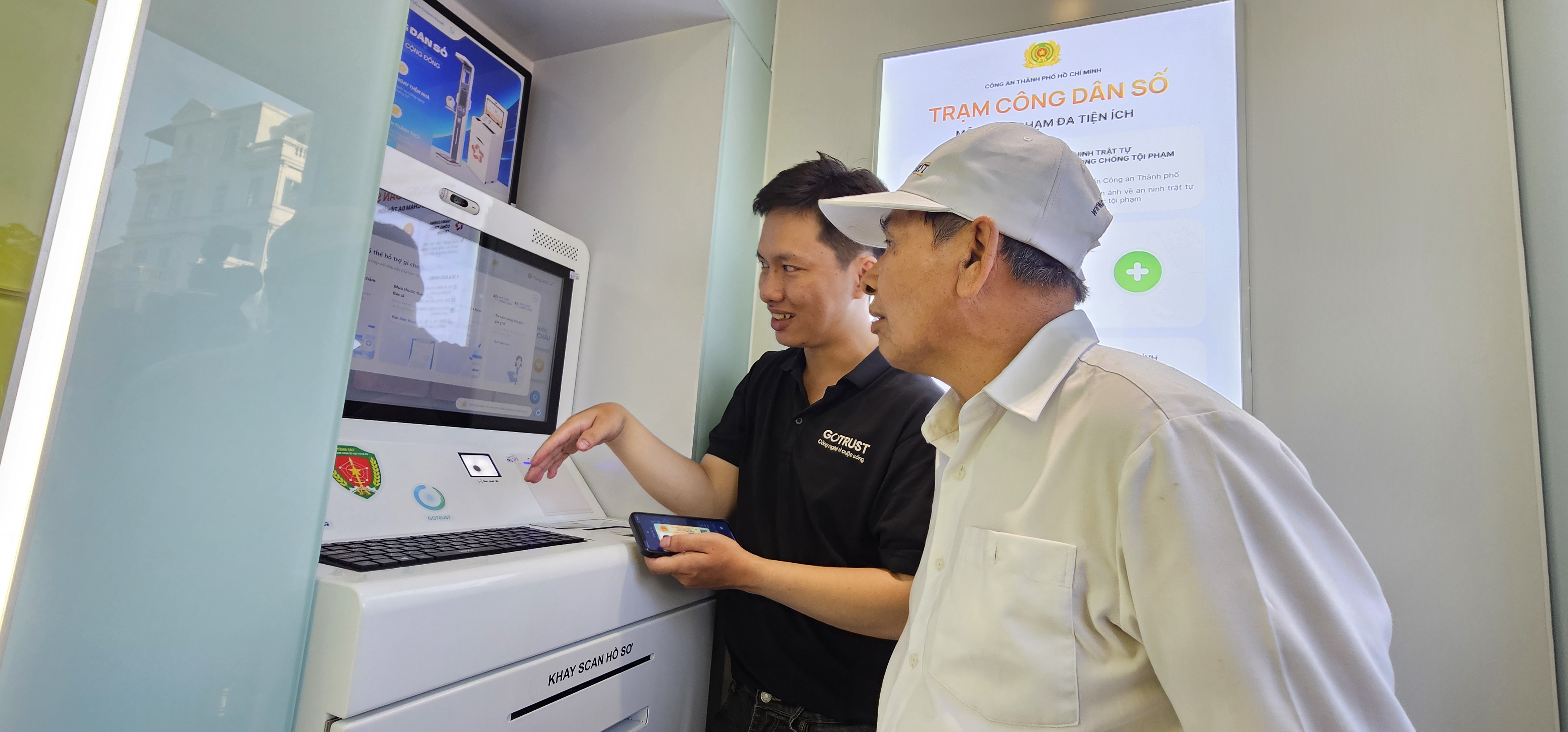 Tại “Trạm công dân số”, với nền tảng kỹ thuật từ Công ty GoTrust, trạm hỗ trợ người dân thực hiện hơn 200 thủ tục hành chính trực tuyến, tập trung vào các lĩnh vực cư trú, hộ tịch và an ninh trật tự thông qua việc xác thực bằng VNeID hoặc thẻ căn cước.