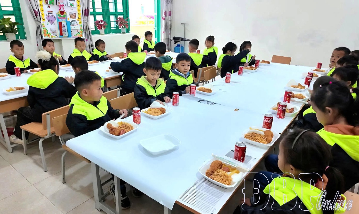 Những suất ăn được các nhà hảo tâm nấu tặng học sinh, mang đến cho các em một ngày đến trường ấm áp.