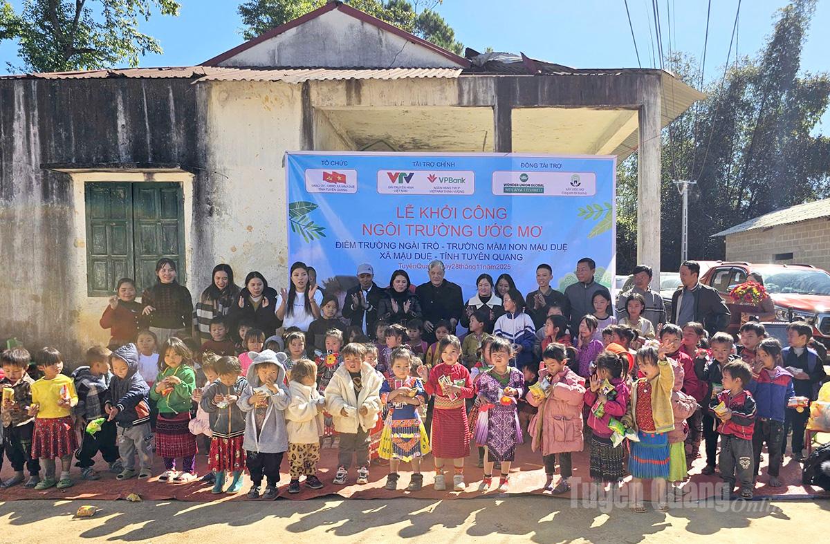 Cùng ngày, đoàn tổ chức khởi công điểm trường Mầm non Ngài Trò, trường Mầm non Mậu Duệ. Với kinh phí hỗ trợ gần 440 triệu đồng, công trình sẽ xây mới 1 phòng học, sửa chữa 2 phòng học, làm tường rào, nhà vệ sinh và sân chơi, phục vụ nhu cầu học tập của 61 học sinh.