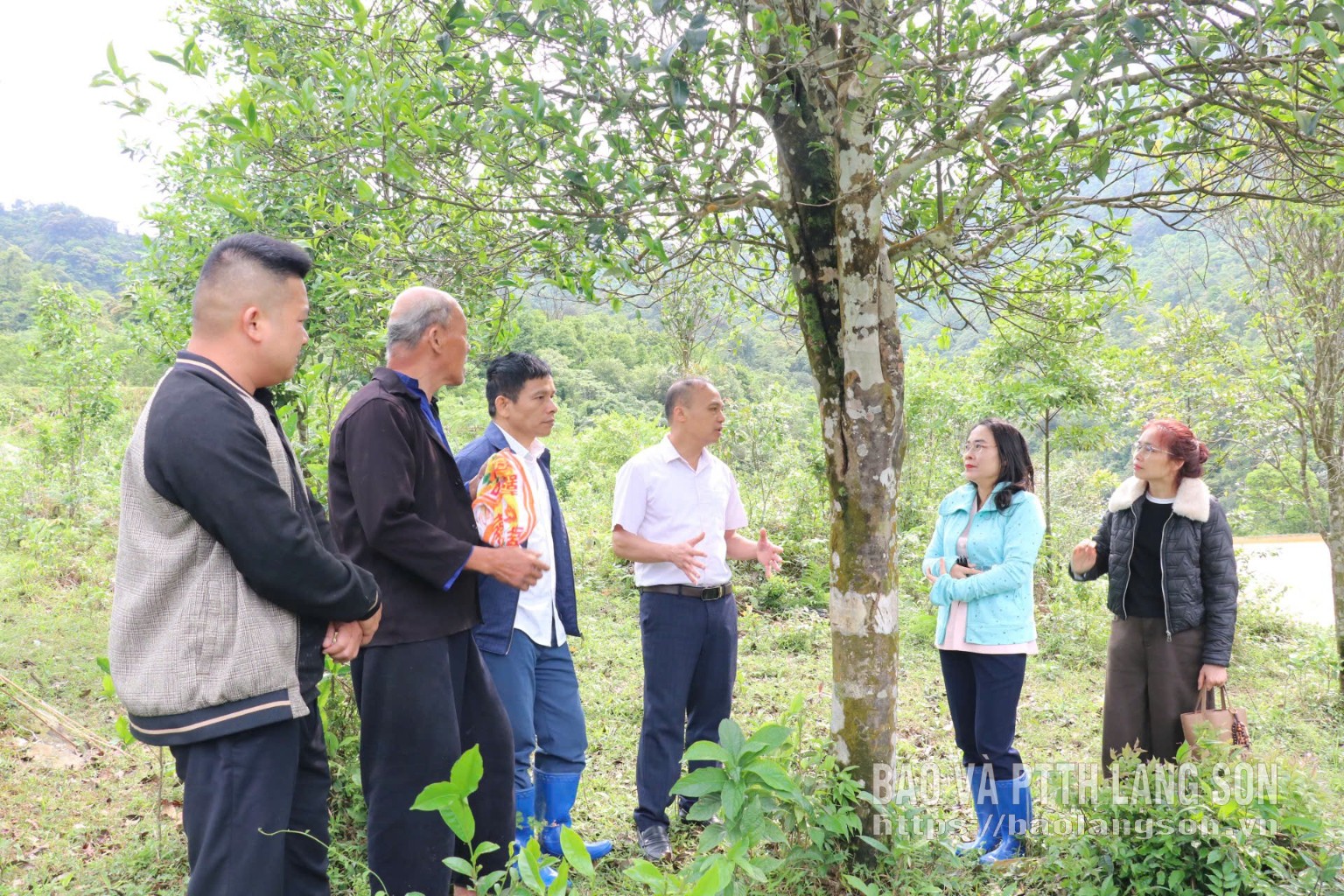Đoàn công tác khảo sát thực tế cây chè Shan tuyết tại thôn Khuổi Cấp, xã Mẫu Sơn