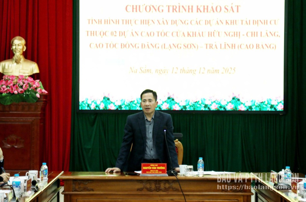 Theo báo cáo của Trung tâm Phát triển quỹ đất tỉnh tại buổi khảo sát, trên địa bàn huyện Văn Lãng cũ hiện có 3 dự án khu tái định cư phục vụ hai dự án cao tốc: Đồng Đăng - Trà Lĩnh và cửa khẩu Hữu Nghị - Chi Lăng. Đến thời điểm hiện nay, tiến độ thi công cả 3 dự án khu tái định cư đều chậm so với hợp đồng đã ký (đạt khoảng 50%).