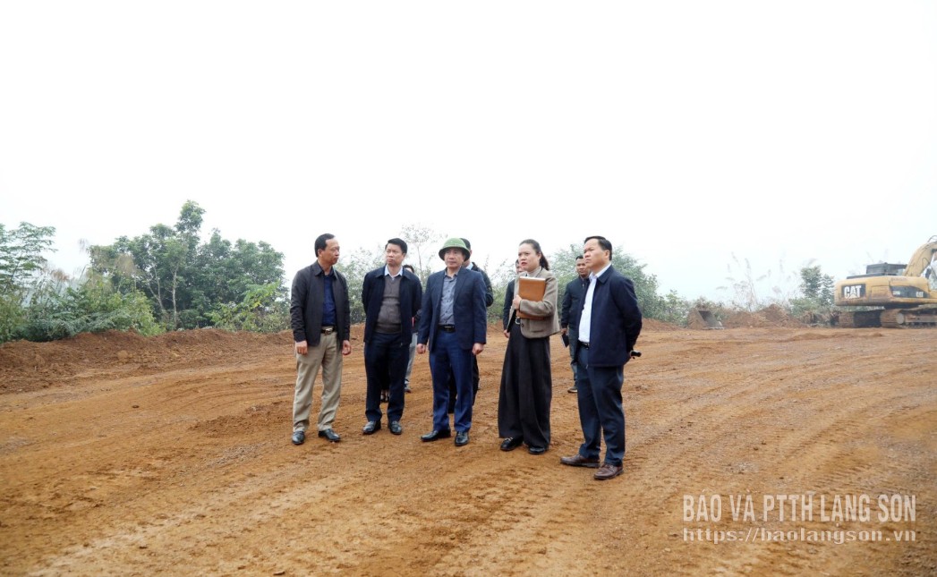 Đồng chí Nguyễn Văn Trường, Phó Chủ tịch HĐND tỉnh khảo sát tình hình thực hiện xây dựng dự án khu tái định cư phục vụ dự án đầu tư xây dựng tuyến cao tốc cửa khẩu Hữu Nghị - Chi Lăng