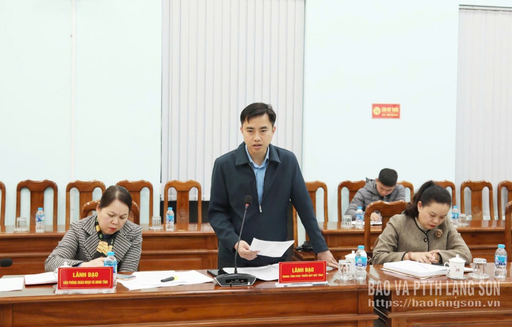 Lãnh đạo Trung tâm Phát triển quỹ đất tỉnh báo cáo tiến độ triển khai các dự án khu tái định cư phục vụ hai dự án cao tốc