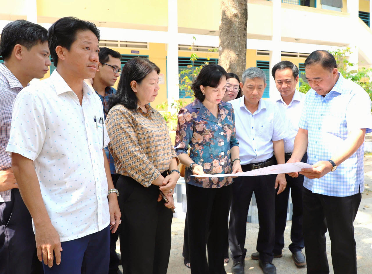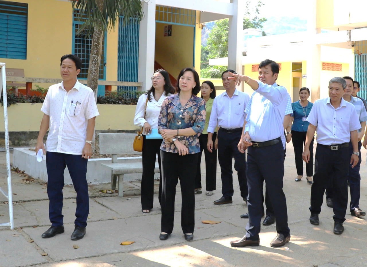 Tại đây, Đoàn công tác kiểm tra khu đất dự kiến xây dựng trường có quy mô khoảng 4,68 ha, 45 lớp học cho khoảng 1.500 học sinh, dự kiến nội trú 350 em. Dự án này sẽ cải tạo công trình hiện trạng và xây mới nhiều khối phòng học, ký túc xá, nhà ăn, công trình phụ trợ.
