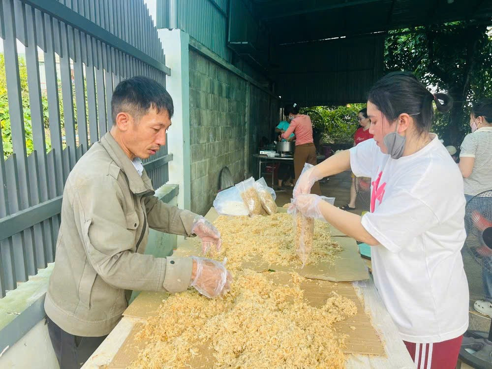 Bà con ở phường Tam Thắng cũng chế biến 300kg chà bông gửi đến người dân vùng lũ