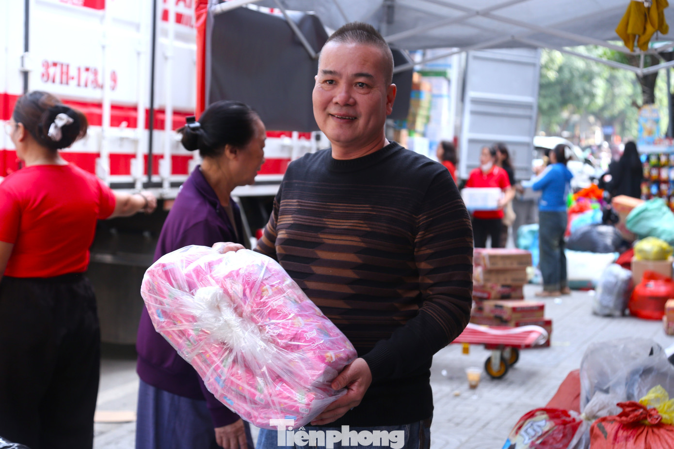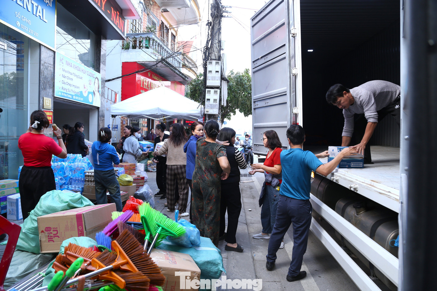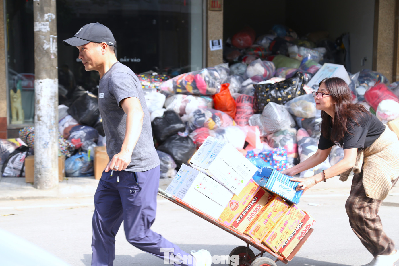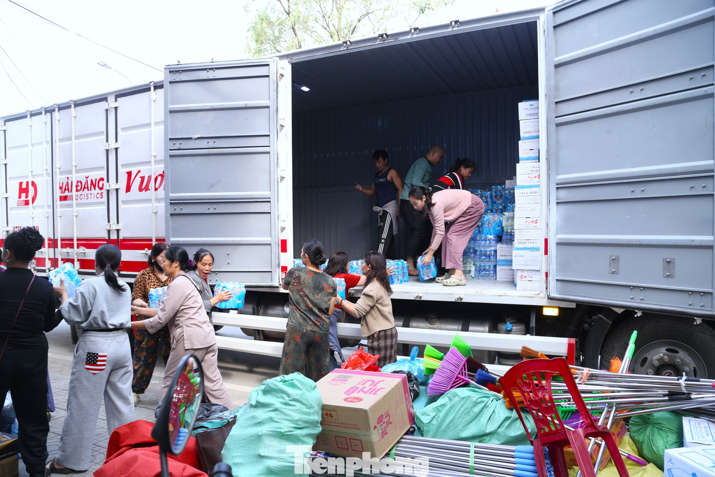 Người dân mang hàng hóa, nhu yếu phẩm đến điểm tập kết cứu trợ. Dù vừa trải qua hai cơn bão số 5 và số 10 khiến đời sống còn nhiều khó khăn, nhưng ai nấy đều mong muốn san sẻ phần nào khó khăn với bà con vùng lũ.