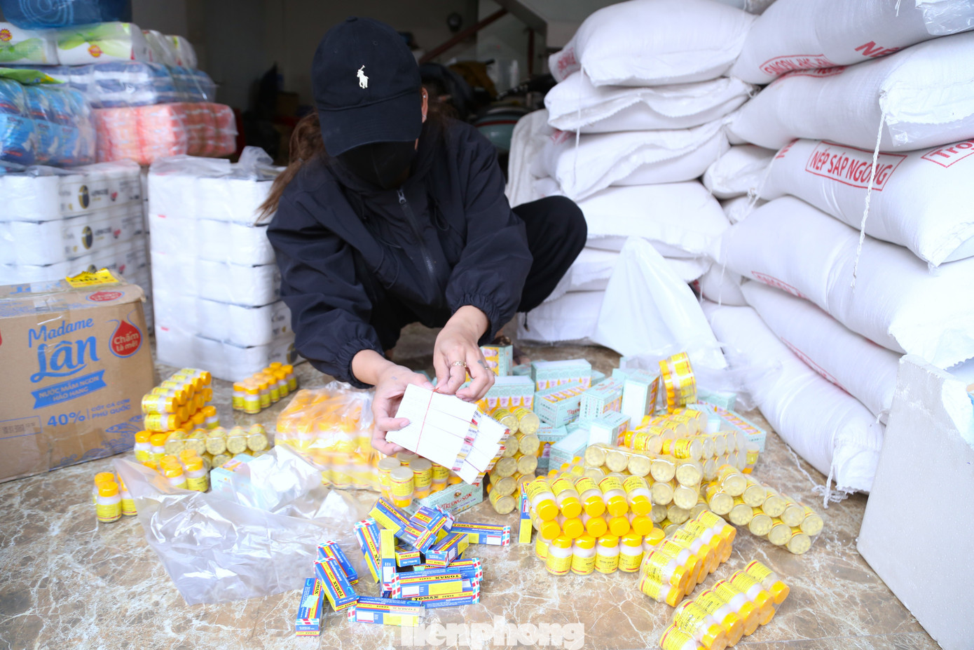 Trong ảnh là điểm tập kết hàng cứu trợ của nhóm CLB Đồng Tâm – Thiện Tâm Xanh (Phú Thọ). Tại đây, các tình nguyện viên miệt mài phân loại và đóng gói từng phần quà xuyên đêm để kịp gửi tới đồng bào vùng lũ.