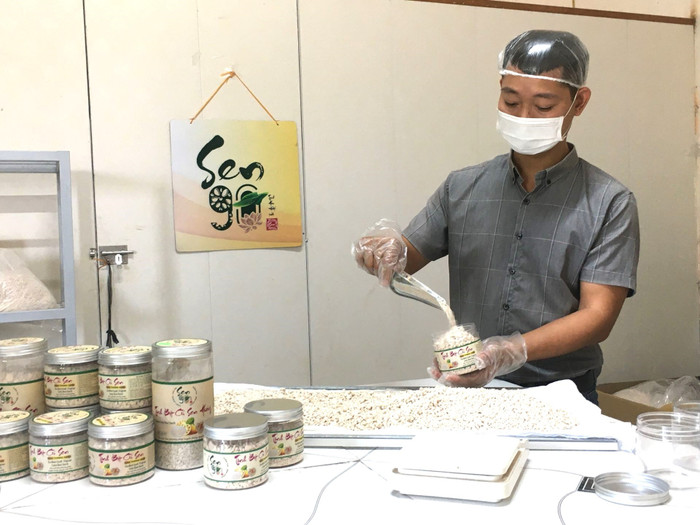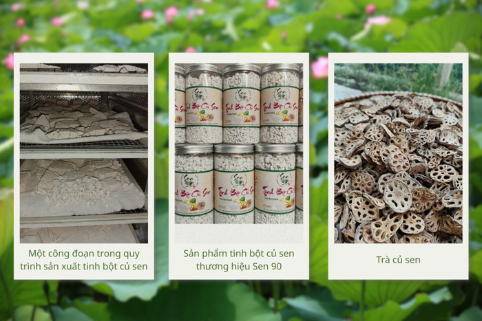 Năm 2023, anh Văn Anh xây dựng thương hiệu “Sen 90”. Để chủ động nguồn nguyên liệu, anh đã liên kết với các hộ trồng sen củ trên địa bàn tỉnh, hình thành vùng nguyên liệu ổn định với tổng diện tích khoảng 4 ha.