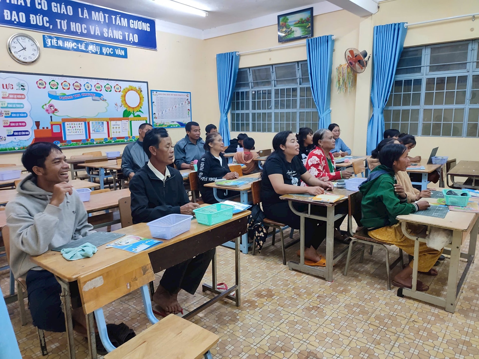Để giúp học viên dễ tiếp thu nhất, giáo viên tăng cường đổi mới phương pháp dạy học sao cho bài giảng dễ hiểu và gần gũi với đời sống hàng ngày của bà con. Mục tiêu đào tạo đặt ra là giúp học viên hình thành các năng lực ngôn ngữ căn bản như: đọc đúng, trôi chảy văn bản và hiểu được nội dung; viết đúng chính tả, ngữ pháp, viết được câu đoạn cơ bản; và nghe hiểu ý kiến người nói.