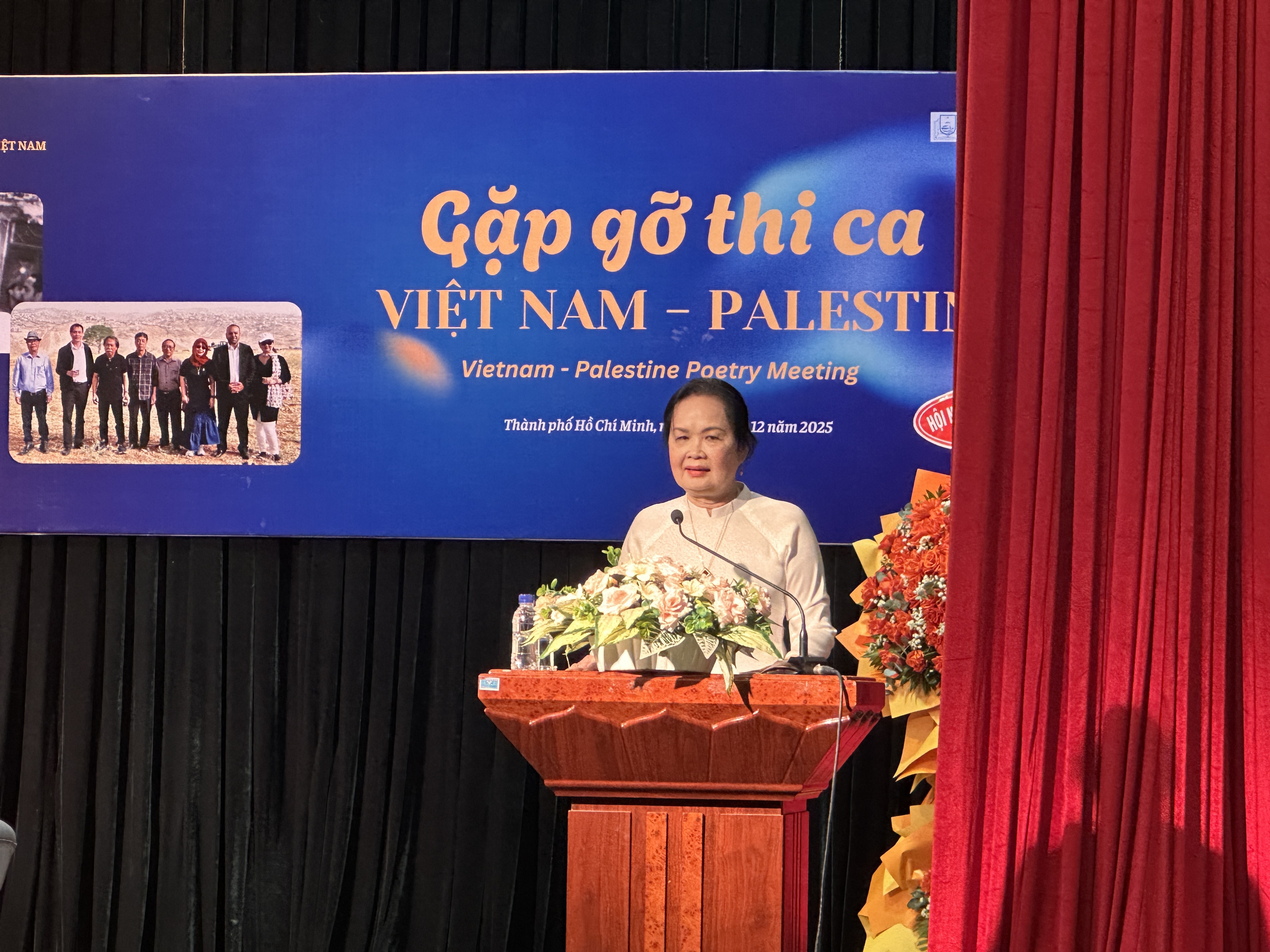 Nhà văn Bích Ngân, Chủ tịch Hội Nhà văn TPHCM, gọi chương trình hôm nay là cuộc hội ngộ của thi ca. Cách đây hai năm, nhà văn Bích Ngân là một trong những thành viên của đoàn nhà văn Việt Nam sang thăm Palestine.