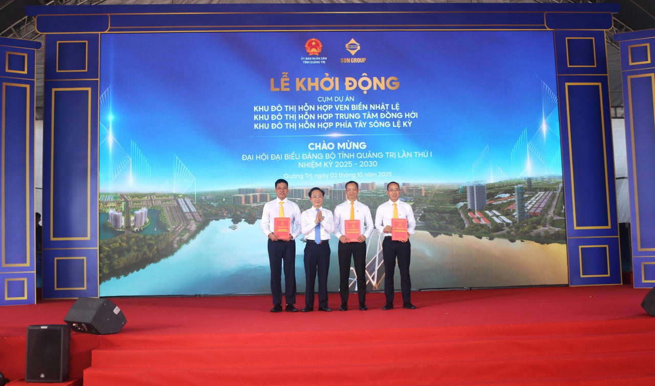 Ngày 2/10, tại phường Đồng Thuận, UBND tỉnh Quảng Trị phối hợp với Tập đoàn Sun Group tổ chức lễ khởi động đồng loạt 3 dự án đô thị lớn gồm: Khu đô thị hỗn hợp ven biển Nhật Lệ (hơn 276 ha, vốn đầu tư trên 12.500 tỷ đồng), Khu đô thị hỗn hợp trung tâm Đồng Hới (hơn 212 ha, vốn đầu tư hơn 11.900 tỷ đồng) và Khu đô thị hỗn hợp phía Tây sông Lệ Kỳ (hơn 291 ha, vốn đầu tư gần 13.900 tỷ đồng). Đây là các dự án có quy mô đầu tư lớn nhất từ trước tới nay trong lĩnh vực phát triển đô thị tại Quảng Trị, được khởi động trong không khí chào mừng Đại hội đại biểu Đảng bộ tỉnh lần thứ I, nhiệm kỳ 2025 - 2030.