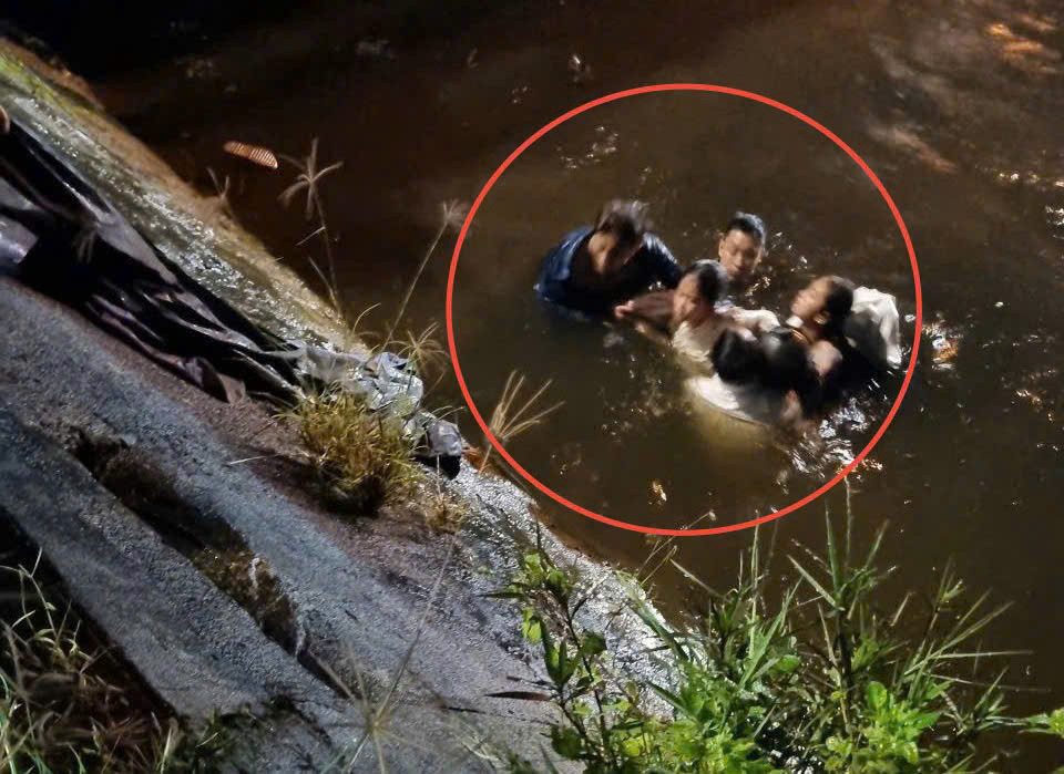 Cha con anh Viên lao xuống kênh cứu chị Thu và 2 học sinh, còn anh Văn đứng trên hỗ trợ đưa các nạn nhân lên bờ an toàn.