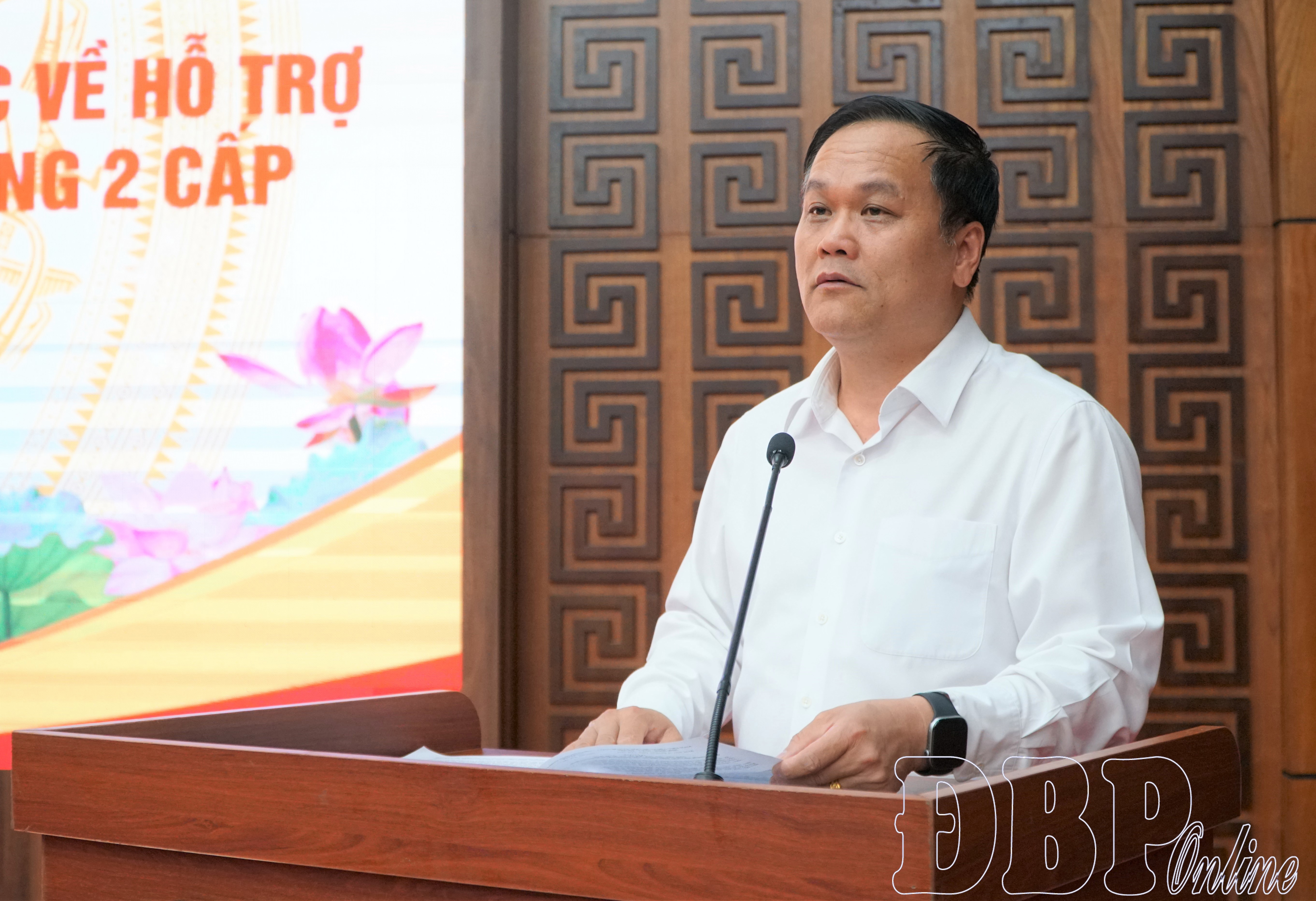 Giám đốc Sở Nội vụ Nguyễn Tiến Đạt báo cáo kết quả biệt phái công chức, viên chức về hỗ trợ UBND cấp xã.