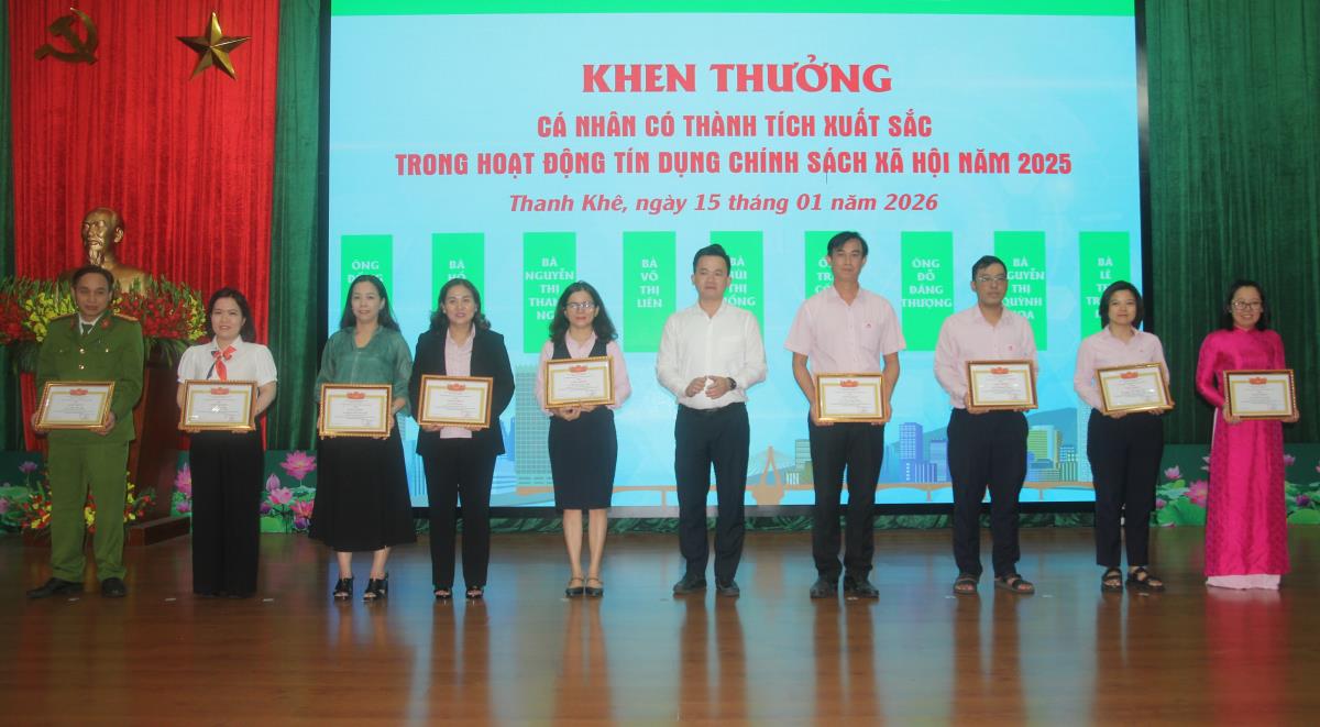 Tại Hội nghị, Phòng Giao dịch Ngân hàng Chính sách xã hội Thanh Khê đã ký kết giao ước thi đua năm 2026 với các tổ chức chính trị-xã hội; UBND phường Thanh Khê trao tặng Giấy khen cho 8 tập thể và 40 cá nhân có thành tích xuất sắc trong các hoạt động tín dujnh chính sách năm 2025.