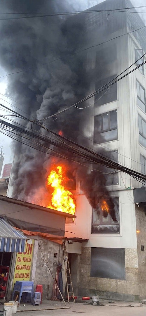 Vụ cháy lớn xảy ra tại nhà số 3 ngõ 218 đường Lĩnh Nam chiều 25/3.