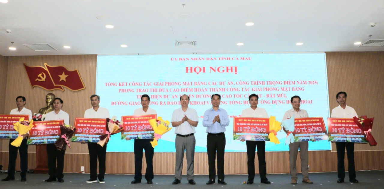 Dịp này, Chủ tịch UBND tỉnh Cà Mau trao bằng khen cho 21 tập thể và 336 cá nhân vì đã có thành tích đóng góp trong công tác bồi thường, giải phóng mặt bằng dự án thu hồi đất, bồi thường, hỗ trợ tái định cư để thực hiện tuyến cao tốc Cà Mau - Đất Mũi.