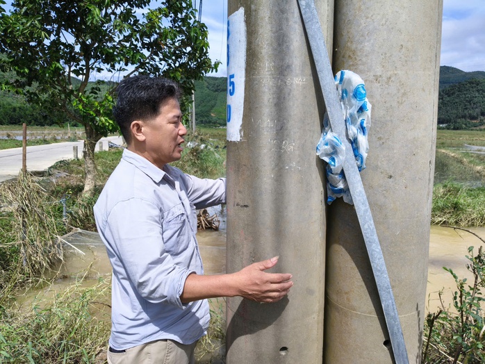 Ông Chiến bên cột điện mà 4 người bị lật ghe bấu víu vào trước khi được cứu
