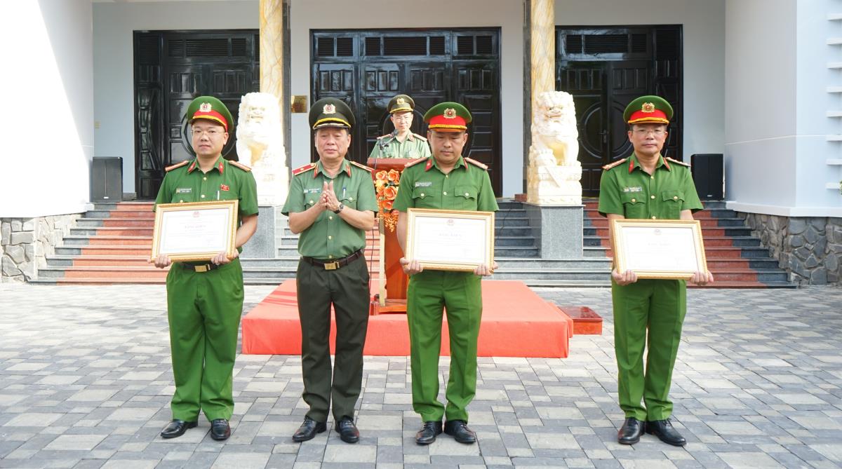 Thừa ủy quyền, Thiếu tướng Nguyễn Hữu Hợp – Giám đốc Công an TP trao Bằng khen của Chủ tịch UBND TP cho 3 cá nhân có thành tích xuất sắc.