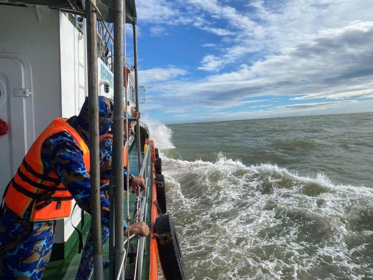 Tàu của lực lượng BĐBP Quảng Ngãi tìm kiếm 3 người mất tích.