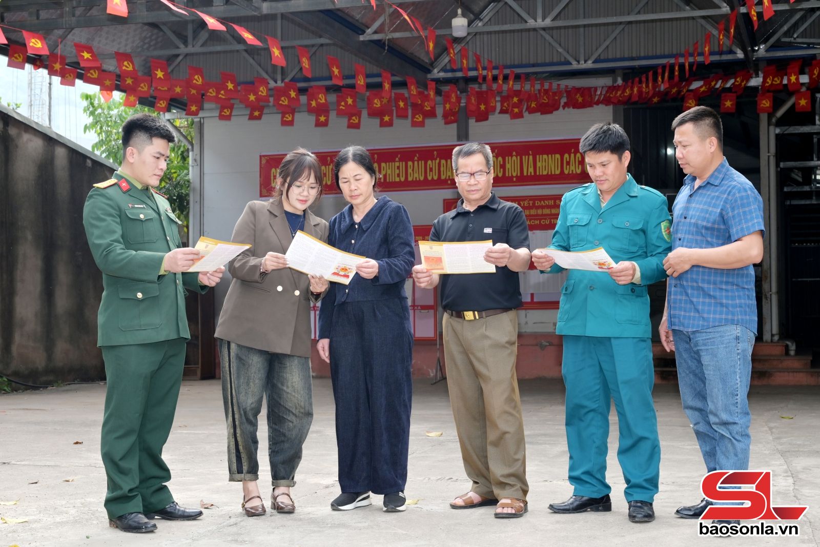 Ban CHQS xã Chiềng Hặc tuyên truyền, vận động nhân dân tham gia bầu cử.